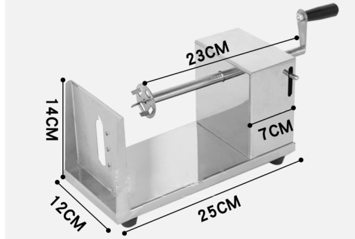 Maszynka ręczna przeznaczona do przygotowania zakręconych ziemniaków, znanych na całym świecie jako spring potato lub twisted potato. Sprawdzi się również przy przyrządzaniu innych warzywnych przekąsek w kształcie spirali.