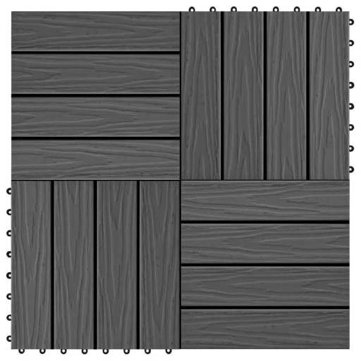 Płytki tarasowe tłoczone, WPC, 11 szt., 30x30 cm, 1 m², czarne