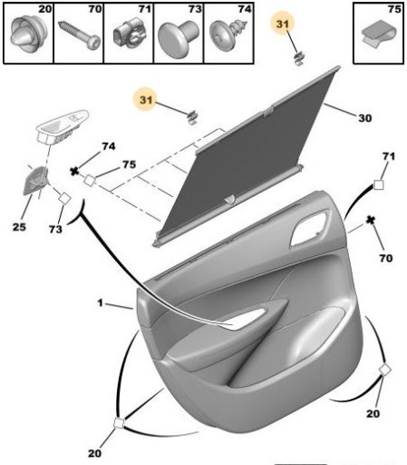 Uchwyt rolety do samochodu Peugeot 308