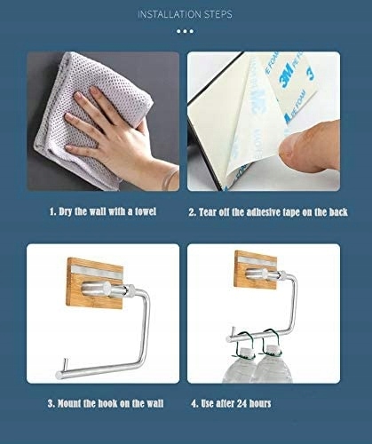 Uchwyt na papier toaletowy ze stali nierdzewnej i bambusową płytą o doskonałej przyczepności 304. Drewno bambusowe jest mocne i stabilne, nie pęka, a tekstura jest naturalna. Solidny masywny hak ze stali nierdzewnej, trwały, odporny na korozję, łatwy do czyszczenia