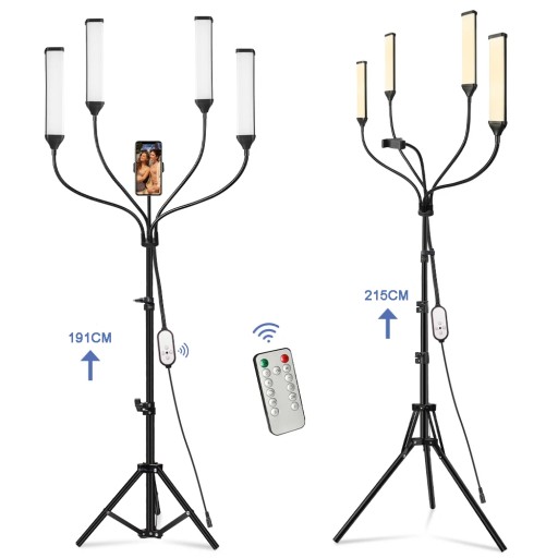 ◇ Zestaw oświetleniowy waży mniej niż 2 kg, a jego aluminiowy statyw zapewnia solidność i stabilność. Regulowana wysokość stojaka w zakresie od 70 do 215 cm czyni go idealnym narzędziem zarówno do pracy nad rzęsami, tatuażem, jak i fotografowaniem produktów.Za pomocą pilota możesz bezprzewodowo regulować jasność lampy. Przy użyciu przycisku można ustawić maksymalną jasność oraz aktywować odpowiednią liczbę ramion w zależności od potrzeb. Możliwe jest również dostosowanie czasowe oraz wybór jednego z dwóch efektów świetlnych: światła świecy lub błyskawicy.