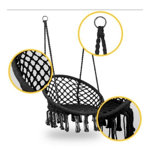 HUŚTAWKA FOTEL WISZĄCY BOCIANIE GNIAZDO BALKON TARAS OPARCIE CZARNE 120KG