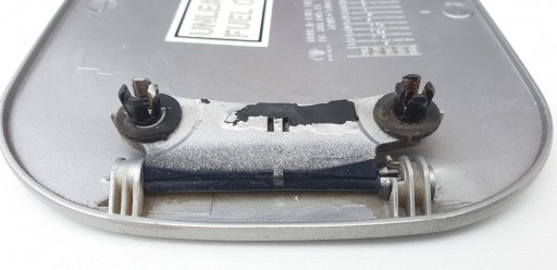 Klapka wizualnie bardzo ładna. Oczywiście jakieś małe ryski się trafią, w końcu to jeździło na aucie. Kod lakieru niestety nie znam - wizualnie jest to srebrny, taki bardziej "srebrny-metalik" będąc trochę bardziej szczegółowy. Mocowania okej, kołki rozporowe jak widać całe. Klapka oczywiście oryginalna.