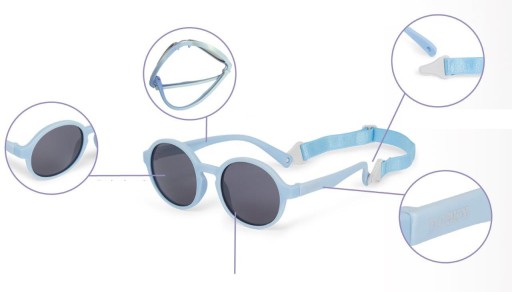 W okularach Dooky użyte zostały soczewki najwyżej jakości z filtrem UV 400, które spełnią najwyższe wymagania. Posiadają trzecią kategorię zaciemnienia filtra, co oznacza, że okulary przepuszczają od 8 do 18% światła. Jest to kategoria najbardziej uniwersalna. Dodatkowo ważnym jest fakt, że nie zaburza ona widzenia kolorów. Okulary są praktycznie nietłukące, mają polaryzacyjne i posiadają antyrefleks. Poręczne: dzięki odpinanemu paskowi można łatwo dopasować okulary do rozmiaru, a FIJI są dostarczane w luksusowym etui do łatwego przechowywania. Twoje dziecko wkrótce zrobi show z tymi modnymi, okrągłymi okularami! Elastyczne zauszniki zapewniają idealne i wygodne dopasowanie. BPA free!