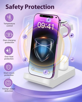 Ulepszona konstrukcja ładowarki Ulepszona konstrukcja i wewnętrzny chip zapewniają bezpieczne i szybkie ładowanie bezprzewodowe. Jedno urządzenie ładujące dla iPhone'a, iWatch i Airpods. Nasza bezprzewodowa ładowarka 3 w 1 jest idealna do użytku domowego i biurowego. Uprość swoją przestrzeń życiową i z łatwością uporządkuj biurko lub stolik nocny dzięki temu najlepszemu akcesorium do telefonu komórkowego.