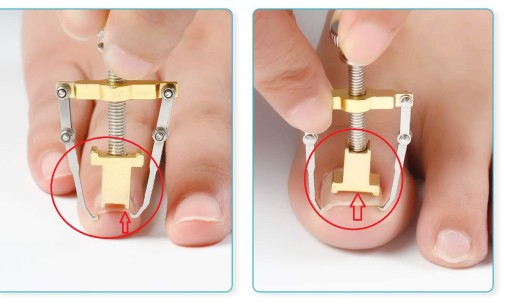Przed aplikacją należy wymoczyć stopy. Następnie, na miękkim paznokciu, zamieszczamy klamrę i zaciskamy zgodnie z szerokością paznokcia, a później dokręcamy głowicę do płytki paznokcia. Po wyschnięciu, paznokieć powinien zachować nadany kształt, a ból związany z wrastaniem, przestanie być Twoim zmartwieniem.