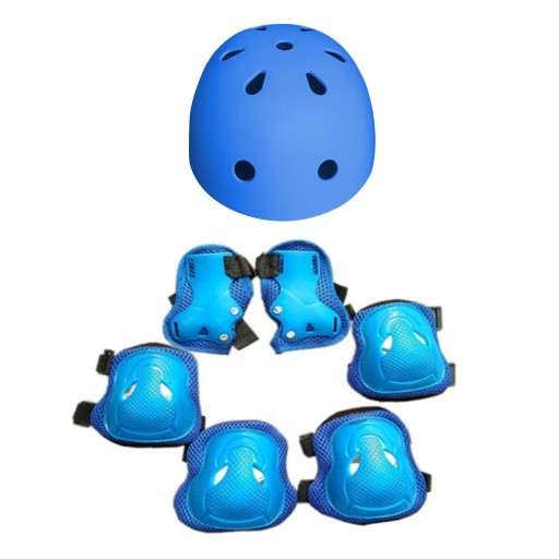 7-częściowy zestaw dziecięcych kasków rowerowych i ochraniaczy z ochraniaczami na kolana i łokcie w kolorze niebieskim