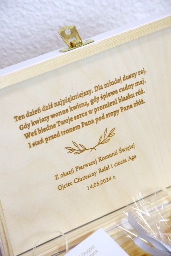 - Wygrawerowane życzenia na tabliczce w środku