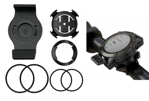 Zestaw zawiera adapter, który idealnie pasuje do zegarków serii Fenix 6, Fenix 7 oraz uchwyt obracany o 90° ze standardowym mocowaniem GARMIN Edge, który z powodzeniem można zamontować na kierownicę, mostek kierownicy lub ramę roweru, za pomocą dołączonych gumek.