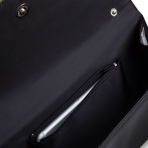 Dzięki dopinanemu paskowi sprawdzi się również jako torebka na ramię. Wewnątrz posiada jedną komorę oraz małą kieszonkę zapinaną na zamek. Magnetyczne zapięcie na klips sprawia, że otwiera i zamyka się w łatwy i przyjemny sposób.