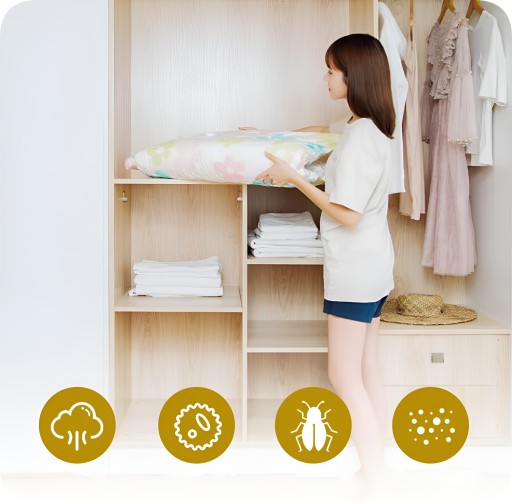✅Skutecznie zmniejszają objętość przechowywanych tekstyliów nawet o 80%, chroniąc je jednocześnie przed wilgocią, kurzem i insektami.