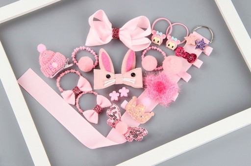 АКСЕССУАРЫ ДЛЯ ВОЛОС ДЛЯ ДЕВОЧЕК НАБОР ИЗ 18 ШТ. РОЗОВЫЙ ДЕТСКИЙ ДЕНЬ