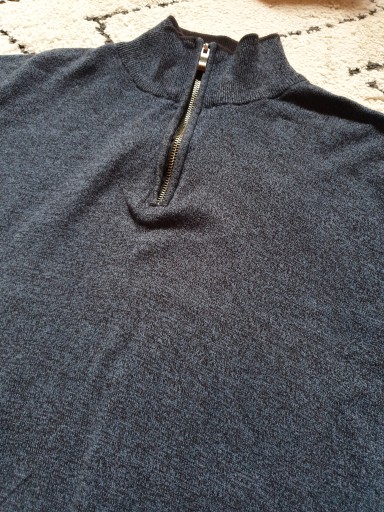 DRESSMANN BAWEŁNIANY SWETEREK POLECAM,stan bardzo dobry,rozmiar XL,dł całkowita 70cm,szer pod pachami 58cm,dł rękawa od szyi 76cm,zapinany pod szyją na krótki zamek,POLECAM