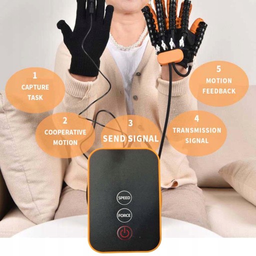 Trening funkcji ręki: Orteza palca, do łączenia rękawic rehabilitacyjnych i może być łatwo używana do chwytania przedmiotów, takich jak piłki treningowe. Jednocześnie posiada inteligentną funkcję regulacji stopnia zgięcia i wyprostu.