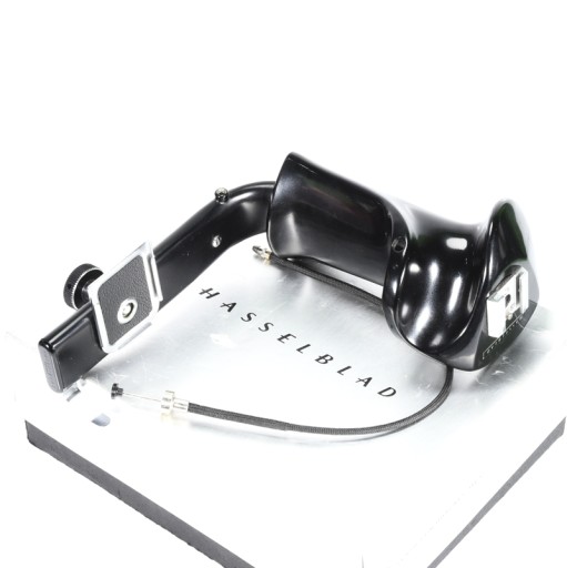 Uchwyt / grip Hasselblad Flash-Gun wsuwa się na płytkę statywu z aparatem fotograficznym. Uchwyt jest tak dopasowany, aby zmieścił się wygodnie w lewej dłoni. Spust uruchamia zwolnienie migawki.