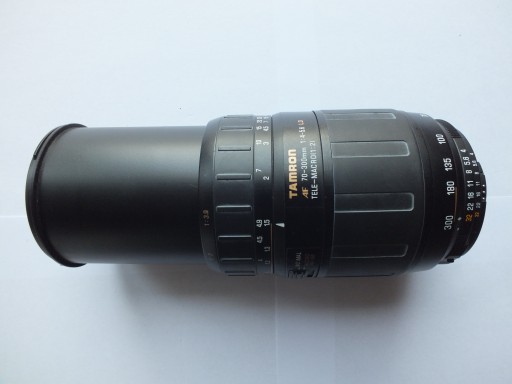 - Tamron AF 70-300 mm 1:4-5.6 LD Tele-Macro + przedni (Sigma) i tylny dekielek