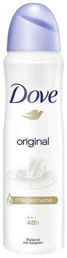 Dove Original to antyperspirant w wygodnej formie sprayu, który w 1/4 składa się z kremu nawilżającego. Doskonale pielęgnuje i nawilża skórę pod pachami. Ciesz się świeżością i przyjemnym zapachem nawet przez 48 godzin. Nie zawiera alkoholu.