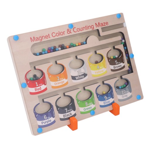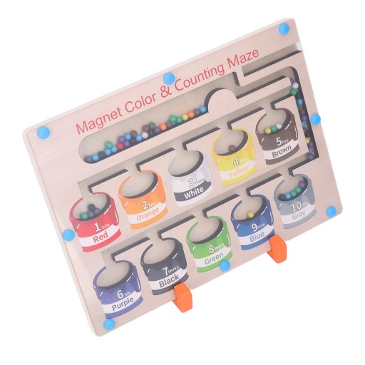 5. Użycie Wprowadzenie: Istnieje 10 różnych kolorowych koszy i 65 małych piłek. Każdy kolorowy koszyk jest oznaczony innym numerem. Dzieci muszą użyć dołączonej magnetycznej różdżki, aby przyciągać i przesuwać magnetyczne kulki pod przezroczystym panelem, a następnie umieszczać je we właściwym koszu, kończąc grę w labirynt pasujący.