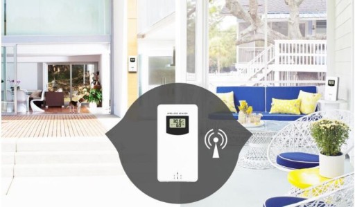 Do zestawu dołączono bezprzewodowy czujnik, który należy umieścić na zewnątrz, jego zasięg to aż 60m, co pozwoli na bezproblemowe korzystanie nawet w dużym domu. Dla zwiększenia żywotności zaleca się montaż w miejscu, gdzie nie jest narażony na bezpośredni kontakt deszczem oraz innymi szkodliwymi warunkami atmosferycznymi.