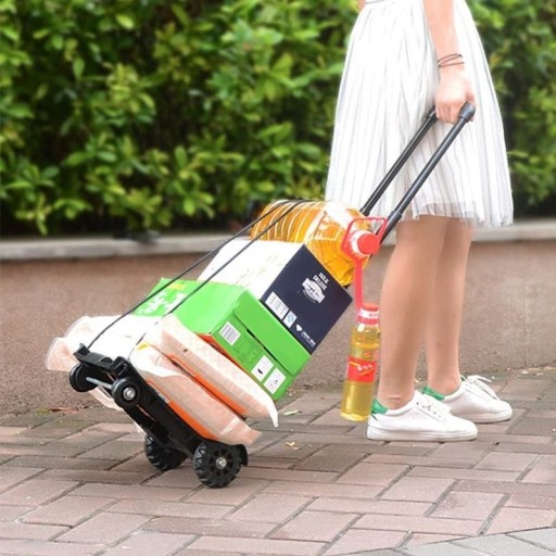 Najważniejszą cechą tego wózka jest jego specjalna teleskopowa konstrukcja, która umożliwia jego składanie do niewielkich rozmiarów. Po złożeniu ma wymiary jedynie 45 cm x 23 cm x 8 cm, co sprawia, że jest łatwy do przechowywania i transportu. Możesz go swobodnie schować w bagażniku samochodu, spiżarni czy innym miejscu.