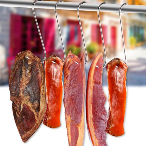 - IDEALNE DO WĘDZENIA MIĘSA – nadzianie mięsa na haki wędzarnicze ułatwia przygotowywanie domowych wędlin czy ryb w wędzarniach. Haki do wędlin mają ostre zakończenia, dzięki czemu łatwo wbić je w mięso i zawiesić w wędzarni.