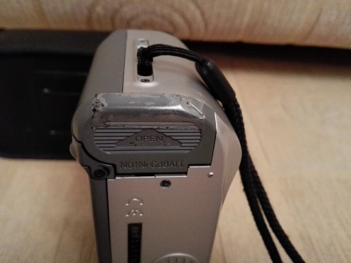 Aparat ma uszkodzoną pokrywę baterii (widoczne na zdjęciu).Po włożeniu baterii pokrywa ta nie zamyka dobrze miejsca na baterie,