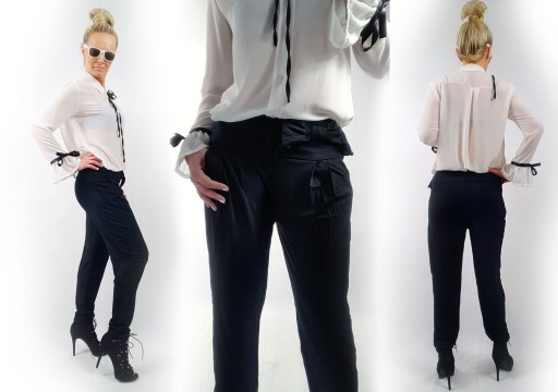 Eleganckie spodnie alladynki harem z cudnymi marszczeniami z przodu i z tyłu.