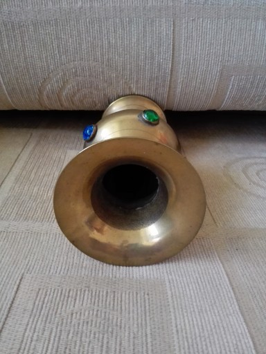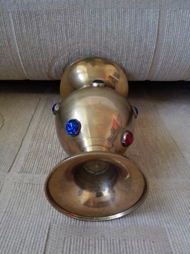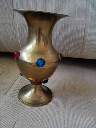 Mam do zaoferowania wazon z kolorowymi dodatkami ( jedno z kolorowych oczek widoczne na trzecim zdjęciu jest źle osadzone). Zapraszam do zakupu.
