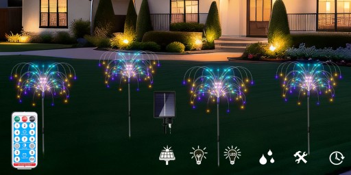 Światła fajerwerków są dostarczane z pilotem zdalnego sterowania, za pomocą pilota można regulować 4 poziomy jasności i 8 trybów migania, ustawić czas świecenia na 3/5/8 godzin, w świetle ogrodowym dostępna jest funkcja automatycznego wykrywania światła, która automatycznie ładuje się na słońcu w ciągu dnia i automatycznie zapala się i miga w nocy.