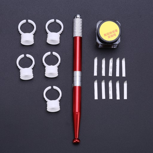 Funkcja:1. Zestaw do microbladingu zawiera pisak do tatuażu, 12-pinowe igły, kubek do tatuażu i tusz, aby dostosować się do Twoich potrzeb