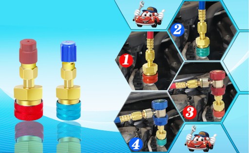- To szybkozłącze R1234YF przekształca interfejs klimatyzatora samochodowego R1234YF/R12 w męski interfejs wysokiego i niskiego napięcia R134A.