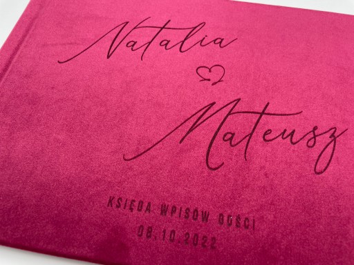 Welurowa księga gości, która jest aksamitna w dotyku, dodatkowo wykonana z plamoodpornego materiału.