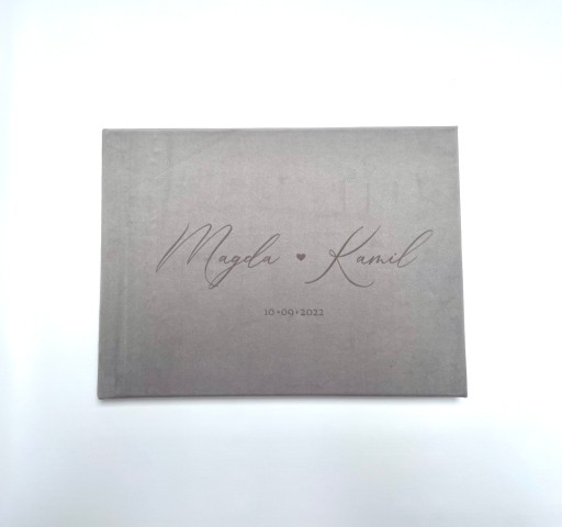 - wzór grafiki personalizowany - grawer laserowy - kolor graweru jest uzależniony od tkaniny, jest on zawsze ciemniejszy od koloru tkaniny którą Państwo wybrali w trakcie zamawiania księgi,