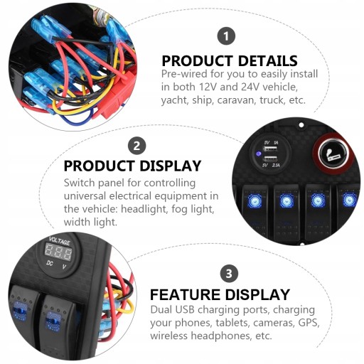 Nadaje się do łatwej instalacji zarówno w pojeździe 12 V, jak i 24 V, jachcie, statku, przyczepie kempingowej, ciężarówce itp.