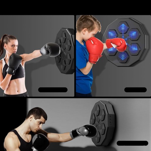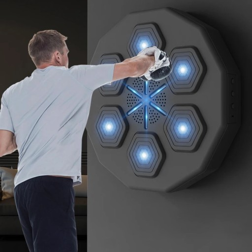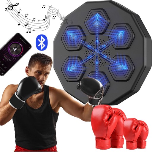 TRENAŻER BOKSERSKI DO MONTAŻU ŚCIANIE MUZYKA RGB 2 PARY RĘKAWIC BOKSERSKICH
