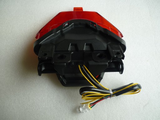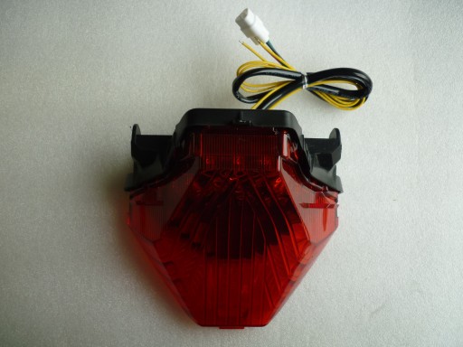 Oferuję na sprzedaż nową lampę tylnią wykonaną w technologii LED.Lampa posiada zintegrowane kierunkowskazy jednak jeśli chcemy pozostać przy rozwiązaniu fabrycznym nie ma konieczności ich podłączania.Podpinamy wtedy kostkę na 3 piny a żółte przewody na kierunkowskazy nie podłączamy.Lampa to wysokiej jakości zamiennik w kolorze czerwonym który pasuje do następujących motocykli marki Yamaha: