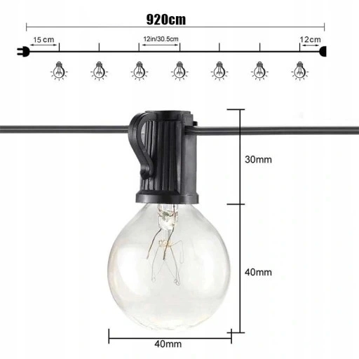 ◀◀◀ Girlandy Lampki ogrodowa 9M + 30 żarówka + 3 zapasowe żarówki▶▶▶