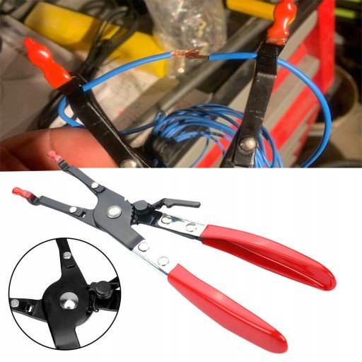 - Zaprojektowany do trzymania dwóch drutów podczas ich lutowania, dolna szczęka otwiera się po obu stronach, aby ułatwić pozycjonowanie kabla.