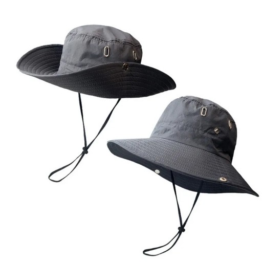 - Tropikalny kapelusz chroniący przed promieniami UV można nosić na dwa sposoby: jako zwykły kapelusz przeciwsłoneczny lub z rondem zapinanym na guziki, tworząc stylowy kowbojski kapelusz.