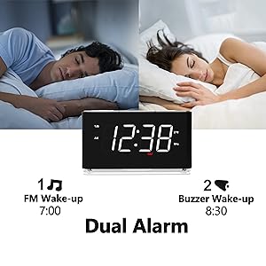 MULTI FUNCTIONAL ALARM: Two independent alarms,4 different alarm auto-repeat modes,buzzer or radio wake-up alarm tones,features 9-minute intervals up to 60 mins in a snooze cycle,15 levels of adjustable FM volume and ascending alarm sound.