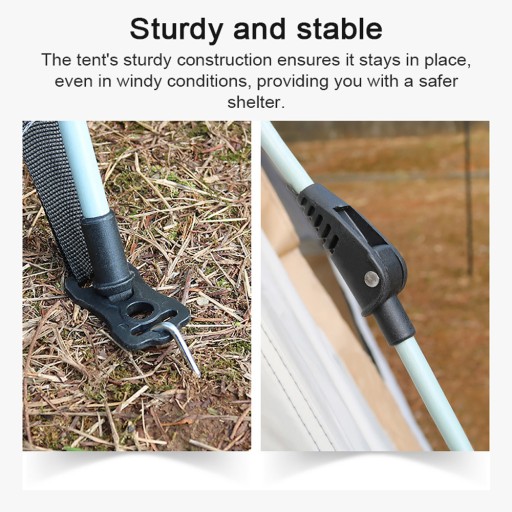 Solidny i stabilny: solidna konstrukcja namiotu sprawia, że pozostaje on na miejscu nawet przy wietrznej pogodzie, zapewniając bezpieczniejsze schronienie.
