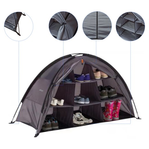 • Nasz namiot do przechowywania na zewnątrz to kompaktowe, przenośne i trwałe rozwiązanie do organizowania niezbędnych rzeczy na kempingu. Dzięki 9 półkom zapewnia dużo miejsca i ochronę przed niekorzystnymi warunkami pogodowymi.