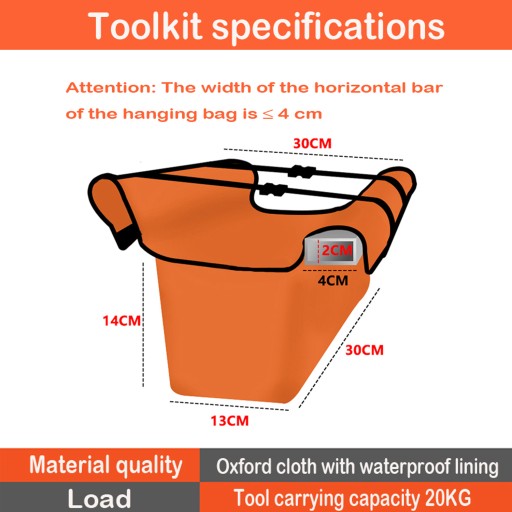 Ten organizer pomieści wszystkie narzędzia o zasięgu do 20 kg, dzięki którym istnieje bardziej produktywny, nie martwiący się o upuszczenie narzędzia lub wielokrotne wchodzenie i chodzenie po nie z drabiny.