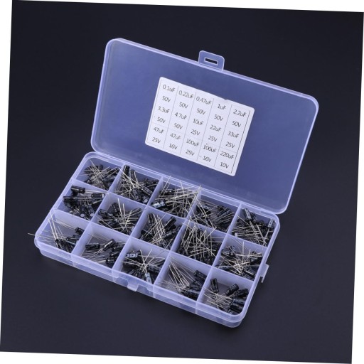 Zestaw asortymentowy kondensatorów wszystkie kondensatory mają oznaczoną wartość dzięki czemu łatwo znaleźć to czego potrzebujesz. Zestaw kondensatorów elektrolitycznych 200 sztuk kondensatorów elektrolitycznych w jednym zestawie będzie sprzedawanych razem. Kondensator elektrolityczny kod znacznika na każdym kondensatorze. Elektroliza aluminium szeroko stosowana w zasilaczach i stopniach łączących wzmacniaczy na częstotliwościach audio.