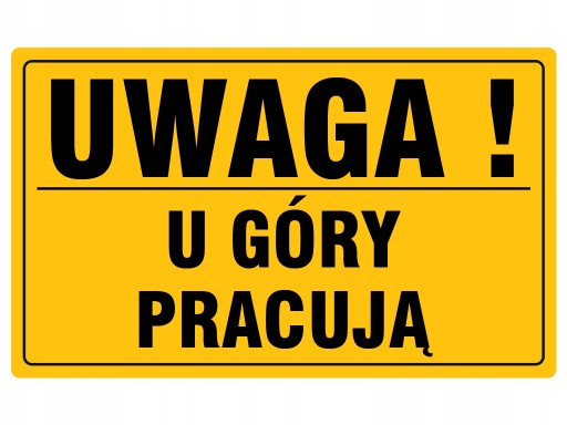 ⭕ Tekst na tabliczce: UWAGA ! U GÓRY PRACUJĄ