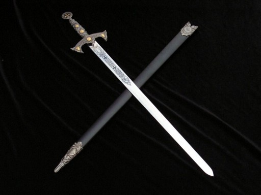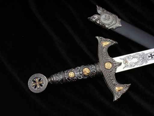 Rękojeść - metalowa bogato grawerowana symbolami związanymi z Zakonem Templariuszy