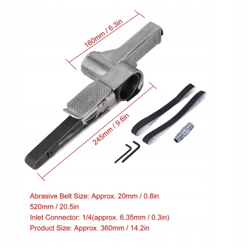 Lista pakietów:1 x szlifierka taśmowa pneumatyczna