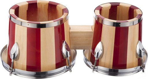 Zestaw bongo z wyściełaną torbą i kluczem do strojenia, czerwony i naturalny pasek