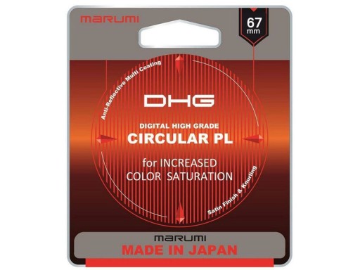Marumi DHG CPL to dedykowany do cyfrowego obrazowania wysokiej klasy, wielopowłokowy filtr przepuszczający fale o określonej polaryzacji wobec zadanej płaszczyzny. Wygasza niechciane refleksy i odbicia światła na wodzie, szkle i innych płaszczyznach niemetalicznych oraz pogłębia błękit nieba i poprawia jego kontrast, zwiększa nasycenie kolorów.