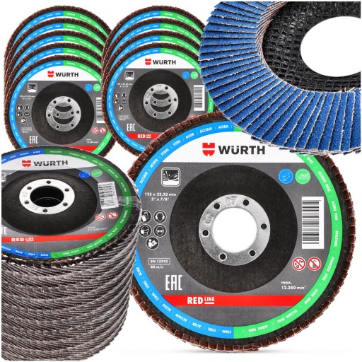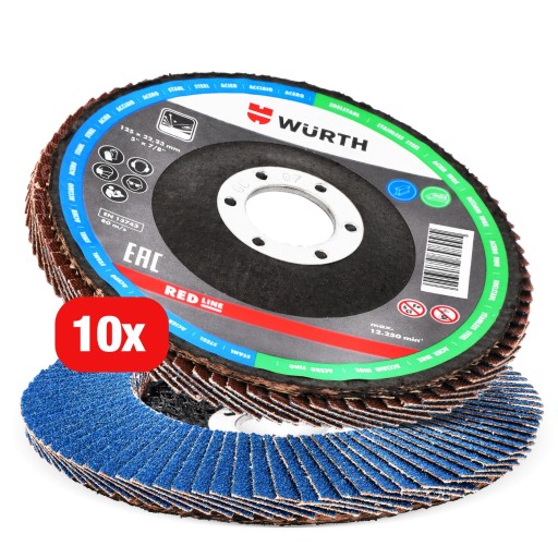 10 лепестковых дисков для шлифования стали 125x1 мм P40 WURTH Strong